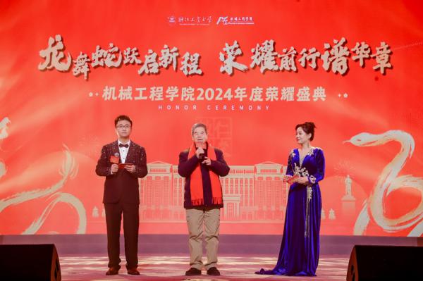 2024年1月15日晚,浙江工業大學機械工程學院2024年度榮耀盛典晚會在屏峰校區板球館報告廳舉行。浙江工業大學化機64屆校友、黃山良業智能控制股份有限公司終身名譽董事長項美根,學校黨委學工部部長、學生處處長姚鵬,學校公共事務管理處處長彭廷紅,學校團委副書記李亞飛,學院領導班子姚建華、章嫦華、譚大鵬、李研彪、樸鐘宇、李曰兵、夏航出席晚會,學院師生共600余人參加活動,共同見證機械榮耀。